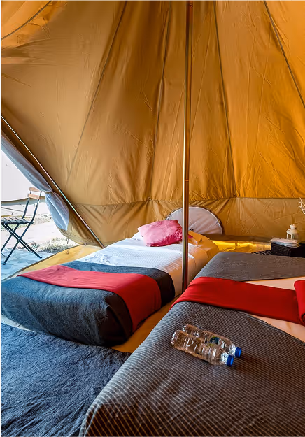 Spacious enough to comfortably accommodate two queen-size mattresses, the Authentic Family Tents measure 6 meters in diameter and are perfect for bigger groups.
